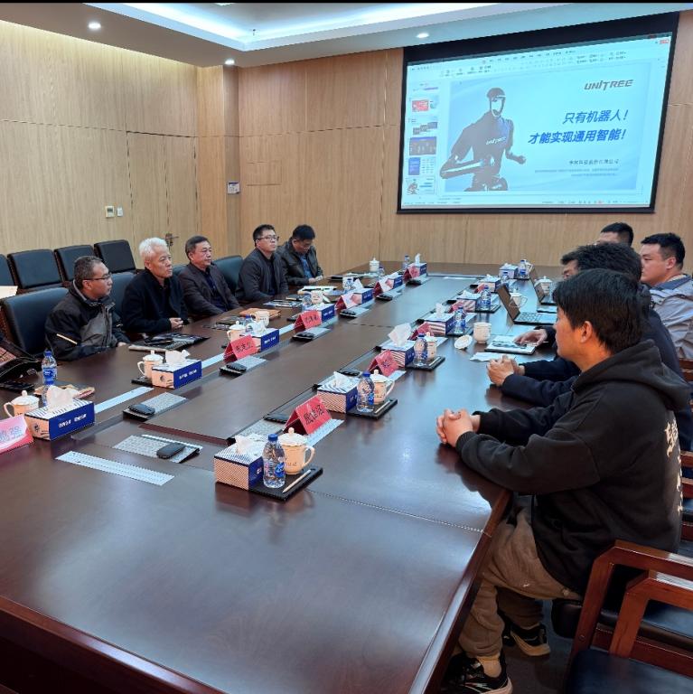 为深入贯彻教育强国建设规划纲要要求,推动教育链、人才链与产业链、创新链深度融合,近日,中德应大与宇树科技股份有限公司在行政会议中心会议室举办具身智能人才培养交流会。校党委常委、副校长关志伟,校企合作与就业处、机械工程学院、智能制造学院、软件与通信学院相关负责人出席会议,宇树科技股份有限公司副总经理王硕,天津市云夫科技有限公司总经理马博及相关业务负责人受邀参会,双方围绕具身智能领域人才培养展开深度交流。