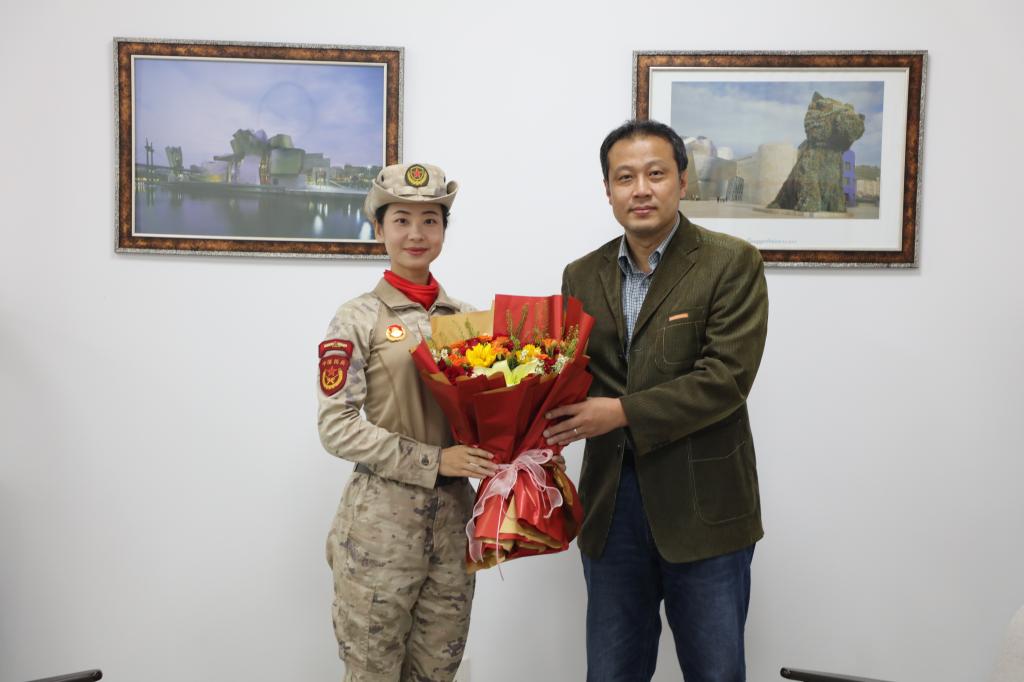 仪式上,校党委委员、副校长高翔向王米佳献上鲜花,代表学校对她表示热烈祝贺和诚挚问候。校友王米佳衷心的感谢学校培养和关心。